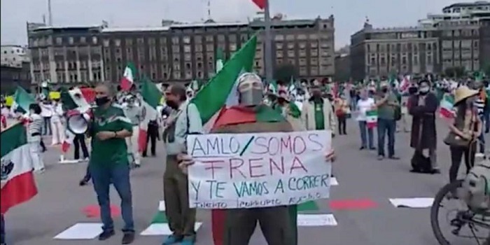 Por: LA RAZÓN ONLINE|23/09/2020 15:06. Los integrantes del Frente Nacional Anti-AMLO (FRENA) llegaron a la plancha del Zócalo donde pretenden volver a montar el plantón que mantuvieron durante cinco días en la Avenida Juárez, luego de que autoridades capitalinas permitieron que avanzaran.