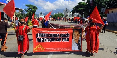 Detalló que la Corriente del Pueblo Sol Rojo demanda la atención a sus 5 puntos centrales, entre estos, la presentación con vida de su compañero Ernesto Sernas García, desaparecido el 10 de mayo de 2018, y el castigo a los asesinos de su también compañero Luis Armando Fuentes Aquino, victimado el 11 de abril de 2019 en San Francisco Ixhuatán.