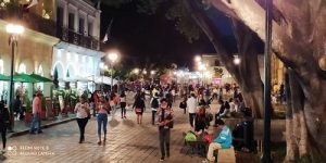 Juan López Sánchez/Barra Informativa/Oaxaca, 27 de septiembre 2020.- Así inició la noche del domingo 27 en el Centro Histórico de Oaxaca, capital, previa al regreso del color amarillo del semáforo epidemiológico, establecido para medir el impacto o gravedad del contagio por el covid-19.