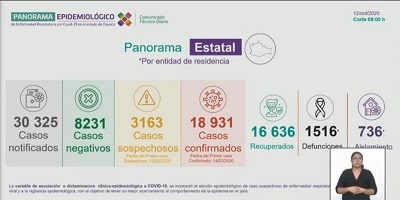 Al corte del 12 de octubre, los Servicios de Salud de Oaxaca (SSO) registraron un incremento por 5 defunciones y 28 nuevos contagios confirmados por COVID-19.