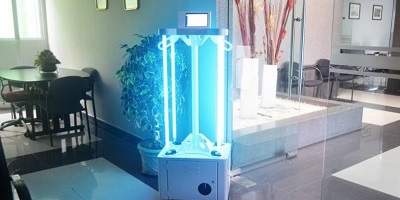 Puede controlarse vía wifi, cuenta con un panel táctil de siete pulgadas y desinfecta áreas de 20 metros cuadrados en un lapso no mayor a ocho minutos gracias a que incluye un generador de ozono, cuatro lámparas ultravioletas, así como diferentes sensores de proximidad para pausar la emisión de luz UV y evitar daños en las personas.