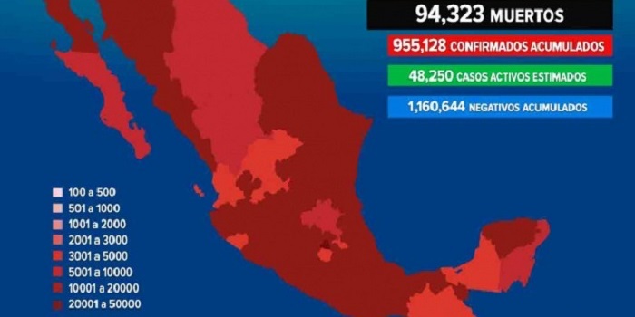 México alcanzó los 94 mil 323 fallecidos por la pandemia de Covid-19; la Ciudad de México se mantiene en semáforo naranja con alerta debido a que en las últimas tres semanas se ha tenido un número sostenido de hospitalizaciones.