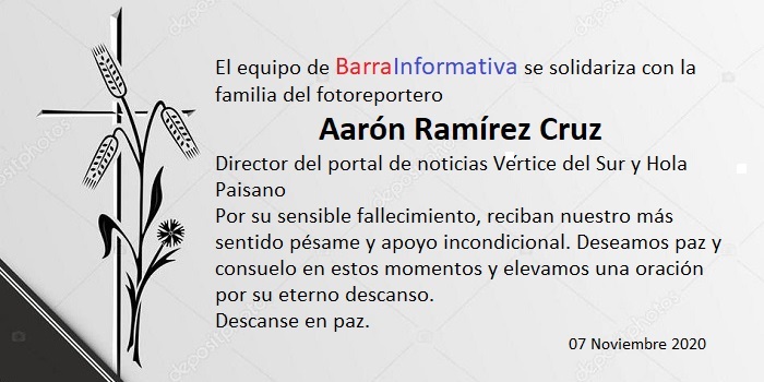 BarraInformativa lamenta el fallecimiento del compañero fotoreportero Aarón Ramírez Cruz, Director del portal de noticias Vértice del Sur y Hola Paisano.
