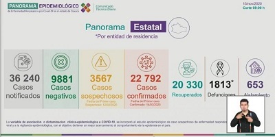 Con ello, el recuento oficial de defunciones por la epidemia en la entidad llegó a 1,813, y los casos confirmados alcanzaron la cantidad de 22 mil 792 al corte del 13 de noviembre.