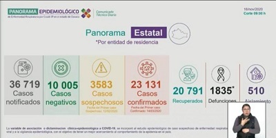 Con ello, el recuento oficial de defunciones por la epidemia en la entidad llegó a 1,835, y los casos confirmados alcanzaron la cantidad de 23 mil 131.
