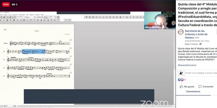 Dichas actividades se realizan a través de grabaciones en espacios locales y serán transmitidas a través de redes sociales y plataformas digitales, ubicando a Oaxaca como centro de desarrollo musical para el sur-sureste de México.
