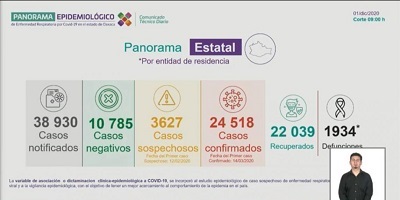 Con esto, las cifras estatales llegaron a 1,934 decesos y 24 mil 518 casos confirmados. Las cifras públicas de los SSO notificaron un total de 555 contagios que continúan activos en la entidad, además de 22 mil 39 pacientes recuperados del SARS-CoV-2.