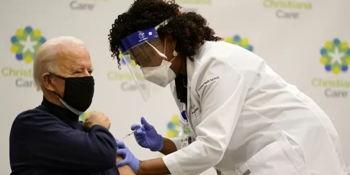 El presidente electo tomó una dosis de la vacuna Pfizer en un hospital no lejos de su casa en Delaware, horas después de que su esposa, Jill Biden, hiciera lo mismo.