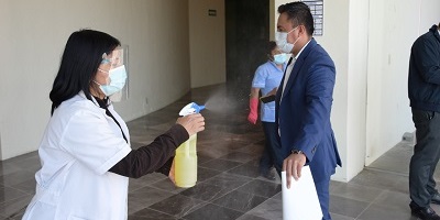San Raymundo Jalpan, Oax. 22 de diciembre de 2020. – Con el objetivo de garantizar el derecho a la salud de las personas que laboran y acuden a la sede del Poder Legislativo, se implementa, todos los días un protocolo de actuación para prevenir el ingreso de personas con probables síntomas de Covid-19 y así evitar su propagación.