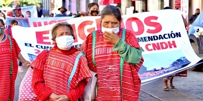 Al realizar una marcha del Llano al Zócalo para exigir justicia a 10 años de haber sido desplazados de su comunidad durante el gobierno Ruiz Ortiz, Ernestina Álvarez García preciso que actualmente viven y venden sus productos artesanales en los portales de Palacio de Gobierno pero las familias desean regresar a su comunidad.