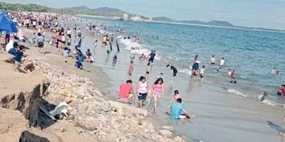 En dichas imágenes se observa a decenas de personas en la playa Escolleras, quienes no guardan la sana distancia y tampoco usan cubrebocas, una de las recomendaciones básicas para evitar la propagación del virus Sars-Cov-2.