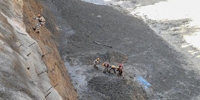 Con la carretera principal completamente arrasada, el túnel se llenó de lodo y rocas, por lo que los socorristas tuvieron que descender por una ladera con cuerdas para acceder al lugar.