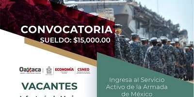 Tlalixtac de Cabrera, Oax. 11 de febrero de 2021. El Gobierno del Estado, a través de la Coordinación del Servicio Nacional de Empleo Oaxaca (CSNEO) y la Secretaría de Marina (Semar), publicó la convocatoria de reclutamiento para ocupar 250 vacantes de Infantería de Marina, 13 puestos de choferes y siete plazas de soldador, que se encuentran disponibles para mujeres y hombres, desde este 11 de febrero en la región del Istmo de Tehuantepec.