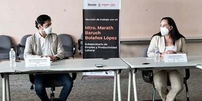 Tlalixtac de Cabrera, Oax. 1 de marzo de 2021. Para fortalecer los esfuerzos del Gobierno de Oaxaca en la generación de fuentes laborales, la titular de la Coordinación del Servicio Nacional de Empleo Oaxaca (CSNEO), Leslie Jiménez Valencia y el subsecretario de Empleo y Productividad de la Secretaría del Trabajo y Previsión Social (STPS), Marath Bolaños López, anunciaron de manera conjunta que el próximo 10 de marzo, en el marco del “Día Internacional de la Mujer”, se realizará la «Feria Virtual de Empleo Oaxaca 2021», donde se ofertarán más de 400 vacantes.