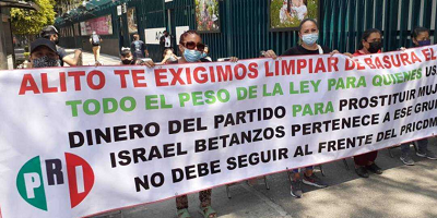 “Alito, te exigimos limpiar de basura al PRI CDMX, todo el peso de la Ley para quienes usaron dinero del partido para prostituir mujeres, Israel Betanzos forma parte de ese grupo, no debe seguir al frente del PRICDMX”, decía una de las mantas que utilizaron para bloquear momentáneamente la avenida Insurgentes.