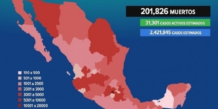 29/03/2021 19:14 REDACCIÓN| Excélsior |CIUDAD DE MÉXICO. Autoridades de la Secretaría de Salud informaron este día que el número de muertos por covid-19 en México llegó a 201 mil 826, con el registro de 203 defunciones más, mientras que los casos estimados alcanzan 2 millones 421 mil 845.