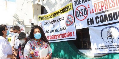 LUNES 12 DE ABRIL DE 2021|Víctor Castillo Stgo. | Corresponsal| Sol de México. Trabajadores del Instituto Mexicano del Seguro Social (IMSS) en Oaxaca se manifestaron en las oficinas ubicadas en calzada Porfirio Díaz, para denunciar a los directivos del Hospital 1, a quienes señalan de sacar medicamentos controlados.