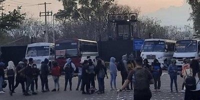Los alumnos, adheridos a la Coordinadora Estudiantil Normalista del Estado de Oaxaca (CENEO), cerraron la circulación vial con los autobuses del servicio urbano que previamente habían retenido en inmediaciones del Centro Regional de Educación Normal del Estado de Oaxaca (CRENO).