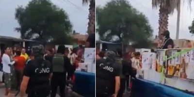 A través de redes sociales, circulan videos donde se observa a hombres con la cara completamente tapada y uniformados con las iniciales CJNG repartir entre los pobladores electrodomésticos como licuadoras, microondas, batidoras, planchas, estufas y despensas.
