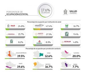 Se tiene registrados 257 personas que cursan la enfermedad en etapa activa, es decir, que iniciaron los síntomas en los últimos 14 días, de los cuales, 174 se ubican en Valles Centrales, 34 en el Istmo, 30 en la Costa, así como ocho en Tuxtepec e igual número en la Mixteca, finalmente tres en la Sierra.
