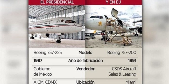 Además, las horas totales de vuelo de ese avión es de 81 mil 185 contra las 9 mil 258 del «Presidente Juárez», adquirido en 1987 por el entonces Presidente Miguel de la Madrid y usado por cinco Mandatarios, desde Carlos Salinas de Gortari hasta Enrique Peña Nieto.