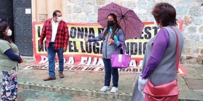 Por Guadalupe Espinoza / Foto de Estación /Marca /18 junio, 2021. Esta mañana vecinos de la colonia del Maestro protestaron en los accesos a las oficinas del municipio de Oaxaca de Juárez para manifestar su rechazo al grupo de funerarias que presuntamente opera de manera ilegal en esta demarcación.