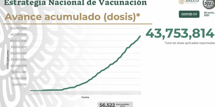 Con ello se ha cubierto al 33 por ciento de la población del país mayor a 18 años. Baja California es la entidad con mayor cobertura, al alcanzar el 79 por ciento, seguido de la Ciudad de México con 52 por ciento. Hasta el momento se han recibido en el país 51 millones 961 mil 165 dosis de seis farmacéuticas.