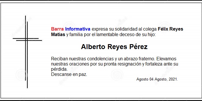 Barra Informativa se une a la pena de fotoperiodista Félix Reyes Matías por el fallecimiento de su hijo Alberto Reyes Pérez. Descanse en paz.