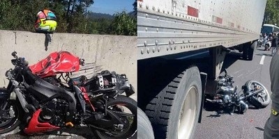 Metros antes de arribar a la curva conocida como ‘La Pera’ dos motociclistas más se derraparon e impactaron contra un tráiler.