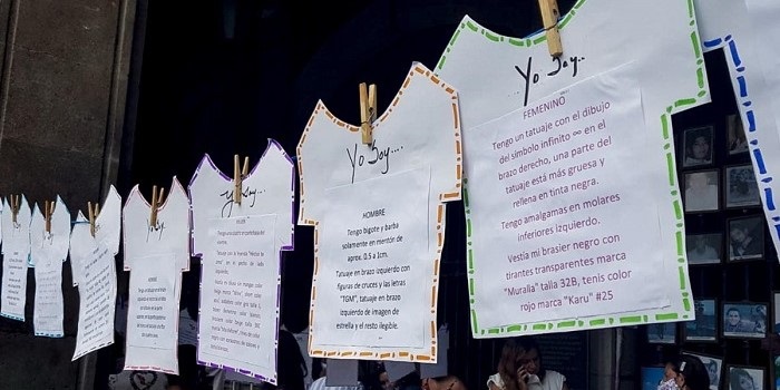 Fue en el Memorial de Víctimas, situado en la entrada principal de Palacio de Gobierno- sede oficial del Poder Ejecutivo- donde colocaron playeras de cartón donde se  describen las características individualizantes, como tatuajes o pertenencias encontradas junto con los cuerpos al momento de su levantamiento.