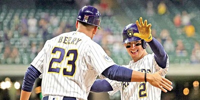 18/09/2021 05:00 Redacción |Foto: AFP| Excélsior |CIUDAD DE MÉXICO. Luis Urías tuvo una gran tarde al pegar dos hits y producir tres carreras para los Cerveceros (90-57), que vinieron de atrás para vencer 8-5 a los Cachorros.
