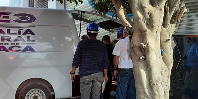 17:13 Luis Jerónimo | Quadratín Oaxaca OAXACA, Oax. 25 de octubre de 2021.- Personal de bomberos y de la Fiscalía de Oaxaca encontraron un cuerpo calcinado en el interior de la bodega de Sayer Lack.