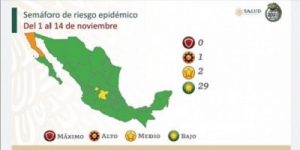 De acuerdo con la última actualización del semáforo epidémico, 29 estados se encuentran en semáforo verde; 2 en amarillo (Guanajuato y Aguascalientes) y sólo uno -Baja California- en naranja. Ninguna entidad ha estado en rojo desde hace un mes.