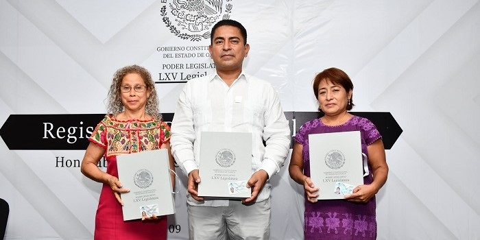 También, recibieron un compendio legislativo por parte de la Secretaría de Servicios Parlamentarios de esta Soberanía que contiene la Constitución Política del Estado de Oaxaca, así como la Ley y el Reglamento Interior del Poder Legislativo.