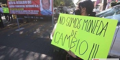 Por Guadalupe Espinoza|Marca|17 diciembre, 2021. Locatarios del Centro Comercial Reforma, se manifestaron este viernes para exigir un alto al posible desalojo del lugar, por parte de las autoridades municipales que encabezan Oswaldo García Jarquín.