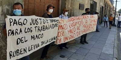 enero 27, 2022 2:39 pm|Redacción El Piñero | Corresponsalía|Oaxaca, Oax.- Extrabajadores del Museo de Arte Contemporáneo de Oaxaca (MACO) exigen la renovación de la Mesa Directiva liderada por Rubén Leyva, denuncian que llevan 11 años sin dar resultados y desviaron más de 4 millones de pesos.