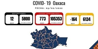 20:26 05 de febrero de 2022 Max León | Quadratín Oaxaca |OAXACA, Oax. 5 de febrero de 2022.- Doce personas murieron por Covid en las últimas 24 horas.