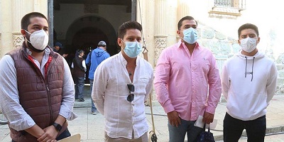 Por Guadalupe Espinoza / Foto de Estación Foto /Marca /DEL DÍA 21 abril, 2022. Integrantes del Consejo Oaxaqueño de Bares, Centros y Restaurantes del municipio de Oaxaca de Juárez, frente a palacio municipal solicitaron que la autoridad municipal haga efectivas las nuevas medidas operativas que beneficiarían al sector empresarial, luego de la crisis que dejó la pandemia de Covid-19.