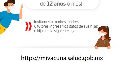 Oaxaca de Juárez, Oax., 28 de abril de 2022.- Los Servicios de Salud de Oaxaca (SSO) convocan a las madres, padres o tutores en la entidad para que registren a sus hijas e hijos a partir de los 12 años cumplidos o más en la siguiente liga: https://mivacuna.salud.gob.mx, con la finalidad de recibir por primera vez la vacuna antiCOVID-19.