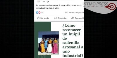 junio 27, 2022|#Juchitán 27 Jun (#Istmopress) – La apropiación cultural indebida del patrimonio textil sigue siendo una lucha constante de las artesanas en Oaxaca, en esta ocasión artesanas y defensoras del arte de la cadenilla denunciaron el incremento de prendas industrializadas, que además de tener un precio bajo, el tiempo de elaboración es de máximo 15 minutos.