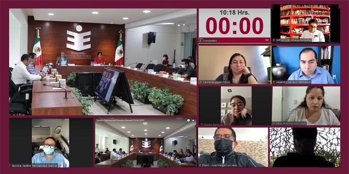 Lo anterior en sesión ordinaria correspondiente al mes de junio, misma que estuvo encabezada por la consejera presidenta, Elizabeth Sánchez González; las consejeras electorales Carmelita Sibaja Ochoa, Jessica Jazibe Hernández García, Nayma Enríquez Estrada y Zaira Alhelí Hipólito López; los consejeros electorales Alejandro Carrasco Sampedro y Wilfrido Lulio Almaraz Santibáñez; así como el secretario del Consejo General, Juan Carlos Merlín Muñoz y las representaciones de los partidos políticos.