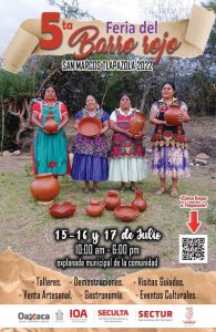 Oaxaca de Juárez, Oax. 8 de junio de 2022. El Gobierno del Estado a través de la Secretaría de las Culturas y Artes de Oaxaca (Seculta), el Instituto Oaxaqueño de las Artesanías (IOA) y Mujeres emprendedoras de Tlapazola A.C., invitan a la ciudadanía en general, turistas nacionales y extranjeros a ser partícipes de las actividades de la quinta feria del barro rojo a realizarse del 15 al 17 de julio en la explanada municipal de San Marcos Tlapazola, agencia de Tlacolula de Matamoros.