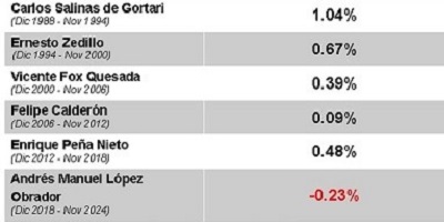 En los siete sexenios más recientes, de los cuales se tiene información estadística, el actual gobierno de Andrés Manuel López Obrador (AMLO) tiene el peor desempeño de la economía y el de Carlos Salinas de Gortari el mayor crecimiento, en el periodo de 14 trimestres.