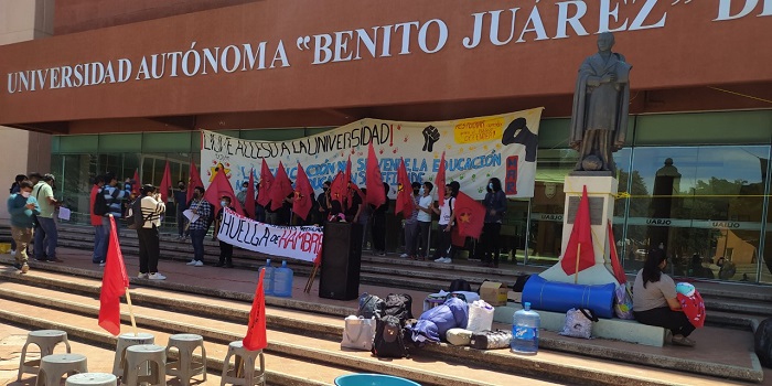 Cerca del mediodía, una veintena de jóvenes, mujeres y hombres, llegaron a las puertas del edificio de la rectoría de la UABJO para hacer realidad lo anunciado un día antes: iniciar una huelga de hambre y mantenerla hasta lograr el objetivo de tener un lugar en alguna de las escuelas y facultades de la universidad oaxaqueña.