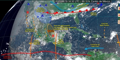 Oaxaca de Juárez, Oax. 19 de agosto de 2022. Para las siguientes horas del fin de semana, la Coordinación Estatal de Protección Civil de Oaxaca (CEPCO) dio a conocer que la onda tropical número 23 que mantiene una trayectoria hacia Oaxaca y Guerrero, en interacción con una zona de baja presión con potencial para desarrollo ciclónico, que se dirige hacia la zona sur del Golfo de México, mantendrá el temporal de lluvias en gran parte del estado, con precipitaciones de intensidad variable, sin representar riesgos mayores en caso de evolucionar a ciclón tropical.