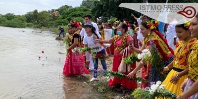 Ver un río caudaloso es agradecerle a la vida y a la madre tierra reconocieron los asistentes, en su mayoría mujeres vestidas con sus enagus y huipiles y menores de edad, quienes le llevaron flores de todos los colores además de bailes y musica.