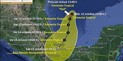 Ante el pronóstico del posible impacto de “Karl” sobre la parte centro sur de Veracruz, como tormenta tropical, Protección Civil Estatal reiteró a la población atender las recomendaciones para esta temporada de lluvias y ciclones tropicales, como el tomar precauciones al transitar por brechas y caminos rurales ante la baja visibilidad durante una tormenta, así como del terreno resbaladizo y posibles deslaves de sierras por el reblandecimiento de la tierra, que se pudieran presentar.
