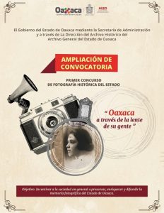 Tlalixtac de Cabrera, Oax. 27 de octubre de 2022.- Gracias a la buena recepción y por petición de la población oaxaqueña, el Archivo General del Estado de Oaxaca (AGEO), órgano desconcentrado de la Secretaría de Administración, ampliará la fecha y cobertura de la convocatoria del Primer Concurso de Fotografías Históricas “Oaxaca a través de la lente de su gente”, dando oportunidad para que más personas puedan participar en esta iniciativa.