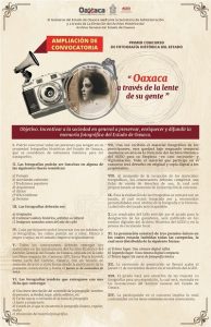 Por lo tanto, el material se podrá entregar hasta el 10 de noviembre y ahora serán bienvenidas las fotografías de todas las regiones que integran el estado de Oaxaca; previamente, la convocatoria estaba limitada a Valles Centrales. Este ejercicio tiene como fin incentivar la preservación de documentos entre la comunidad oaxaqueña, al tiempo que se enriquece y difunde la memoria fotográfica del estado.