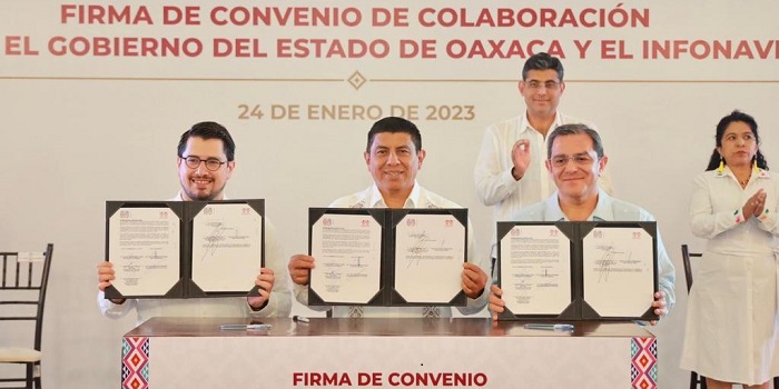 «El presidente López Obrador instruyó un cambio a la ley, lo hicimos en coordinación con el sector empresarial y el sector sindical, que conforman el Infonavit, y hoy es una realidad para que miles de familias oaxaqueñas que alguna vez cotizaron, hoy puedan usar ese dinero con una tasa de interés de 0% para mejorar su casa», añadió.